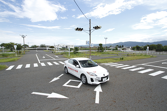 外周道路の幅が10mあり、広々としたコースで教習を受けていただけます。 |